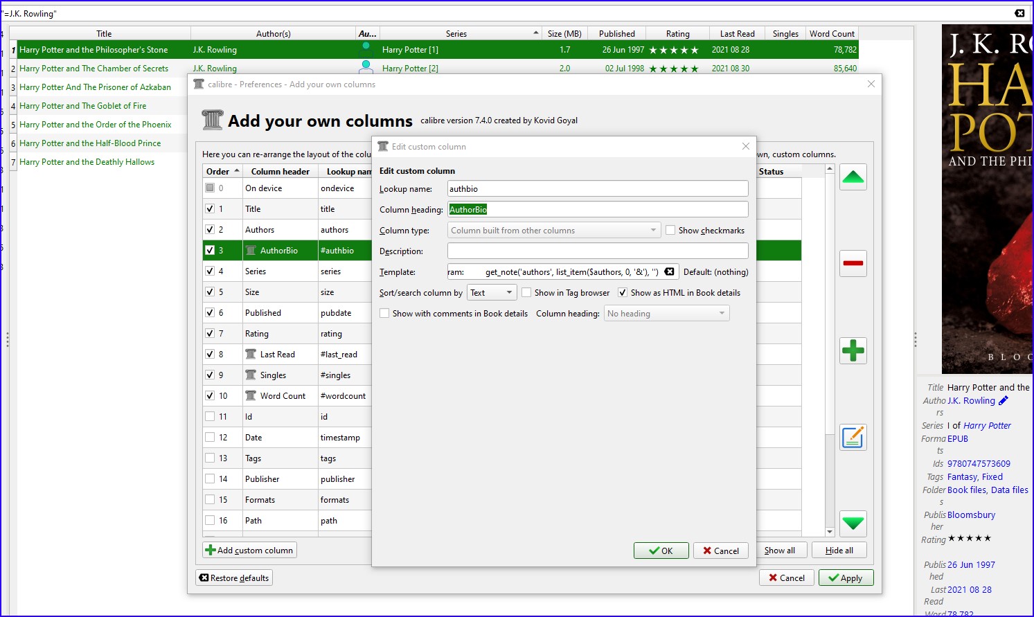 In case anybody else wants to do this and not sure how, some images are attached. 1. Create a new column as shown in the first image 2. Create a column icon. For the icon, you will have to source it online then add it into your roaming folder... C:\Users\Office1\AppData\Roaming\calibre\cc_icons |