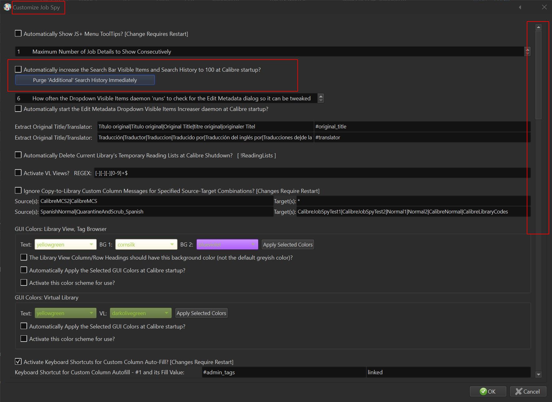 So I'm currently in the process of merging the last good config folder with my latest settings, with which I'm very pleased. The ongoing merge goes like this: - To begin with, I've restored last good calibre config folder from 09/09/2023. - ran calibre, updated all plugins, installed the ones I had not installed on the restored config - all is good. icons show. backed up config folder until now. - ran calibre, imported all chains that I had exported from a Calibre Portable 7.6 install, which had been imported from my latest icon-bugged config on main install. (BTW: On Calibre Portable, the same chains from the bugged config wouldn't work immediately upon import. But after restarting Calibre Portable, the custom icons did show up! I found this only today) - all is good. icons show. did another "ongoing-config-merge" backup. - replaced all files in the root of the calibre config folder with the correspondent files from my icon-bugged config. ran calibre. - all is good. icons show. did another "ongoing-config-merge" backup. Now I have restored almost all my current Calibre settings from the most recent backup I made today 05:00AM before the merge, except for individual plugin settings, which sit in the plugin folder. - replaced all files in the plugins config folder with the ones in my 5:00AM backup, leaving only action-chains subfolder, Action Chains.json and Action Chains.zip untouched. - this time when I ran Calibre, the issue came back. Custom icons were gone again. Now i'll have to restore my latest ongoing merge backup and replace the individual plugins' settings one by one. edit: All good now!! yaaaaay. I'm so happy that I'm able to choose my chain icons again, phew. Thanks capink for looking. I was able to restore every bit of my latest settings and narrow down the issue to one specific plugin, now I'm gonna need to watch carefully for some time to see if I can pinpoint which of my settings could be interfering (JS+) --- new edit: I've found that toggling the setting for increasing search bar history visible items triggers the issue. I've added a small video demonstrating this, just for the record. Last edited by Comfy.n; 03-03-2024 at 10:07 AM. |