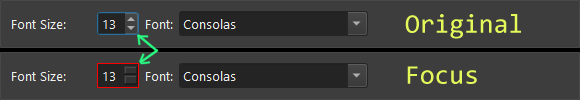 The simple QSS for showing focus has a certain unpleasant side-effect, which applies primarily to the two widgets: QSpinBox and QComboBox.