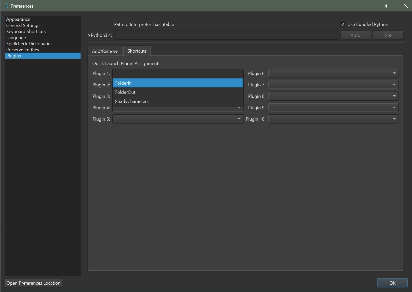 I dont use toolbars, but if I did I could assign plugins to buttons, thus: That shows I have assigned "Folder In" to "Plugin button 1", and that I can get a list of installed plugins to select from. ![]() But I do use kb shorts, this is what is presented: I don't have a clue as what plugins are installed or what shortcuts have been assigned to which plugins, sort by Name is skew-whiff, and to add insult to injury if I remove a shortcut the focus shifts to the Shortcut text box, which of course I can't Tab out of ![]() BR |