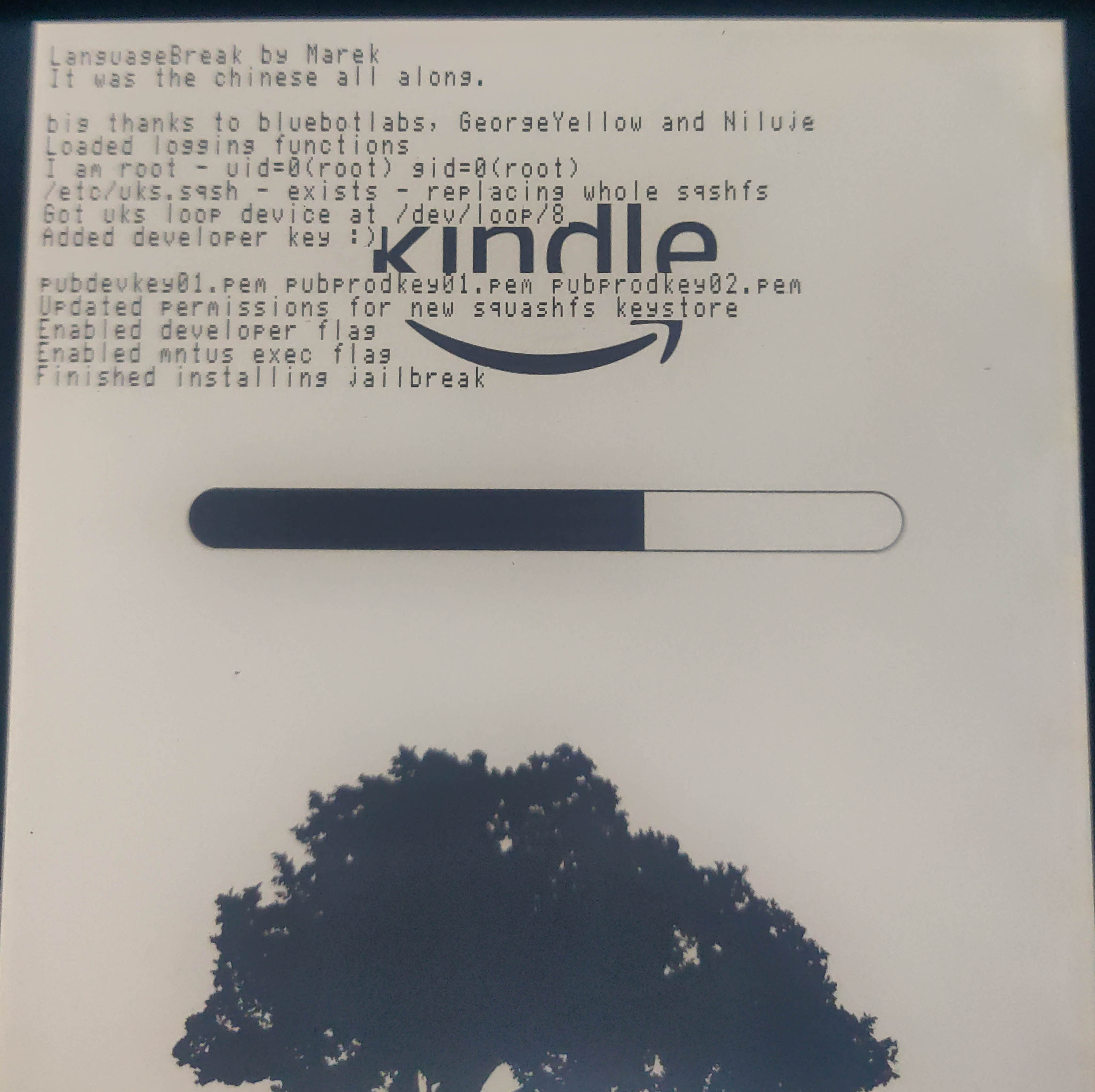 I have yet to ever see the mkk directory in my root so I suspect something is in a bad state somewhere and at this point I feel as though this is quite hopeless. I guess my questions for this thread are what I might try either to start from scratch in the event I'm not factory resetting properly or what I might try to finish the JB? I guess failing this, there might be enough telemetry on my device that might prevent me from returning it? FWIW I've jailbroken all of my previous kindles (not on LanguageBreak) just for some reason this one is giving me a really hard time.