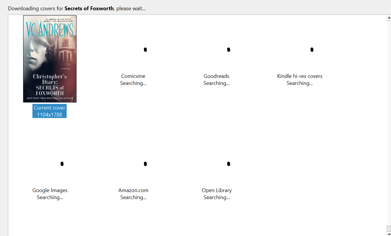 Hello everyone, so for some reason Calibre will no download from sources other than Goodreads or Kindle HD, despite having all of the sources that I wish to use checked. Please note that before, when using the Google Images selection a LOT of images were displayed. And no, I'm not IP banned, I did read on another thread that that was the culprit for someone else, besides, I have more than just Google selected, and I'm only getting results from Goodreads. Otherwise, if that's unchecked, I don't get anything. Removing the ID's in Metadata does nothing, like in regards to ISBN and such.
