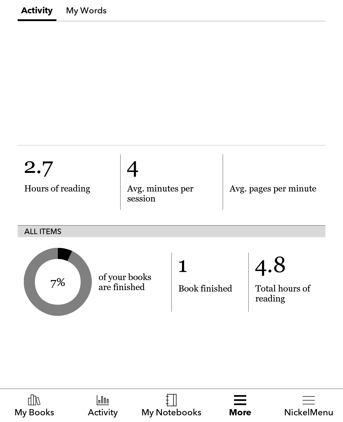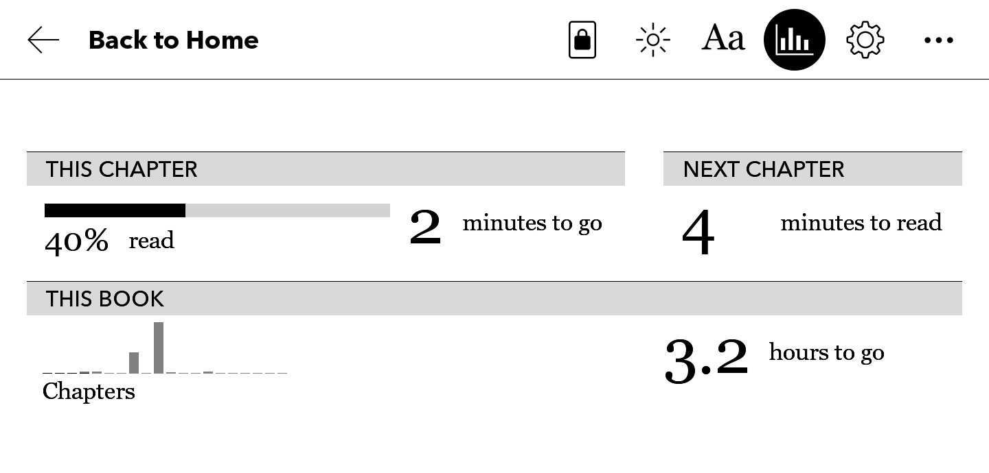 I got a Kobo Sage a couple of days ago and have been doing some tweaks. Is it currently possible to edit the top menu in the in-book reader? Specifically, I wish to remove the button which displays the remaining time left in the chapter and book: Also, on a related note, I'm on the side-loaded mode and want to know if it's possible to hide the "Activity" tab of the "Activity" section, while still keeping the "My Words" tab. If that's not possible, can the entire Activities section be removed? I couldn't find any patch which covers these, and also tried with NickelMenu but it seems that only allows the creation of new items, but not the removal of built-in ones. Last edited by pdurrant; 06-08-2024 at 06:27 PM. |