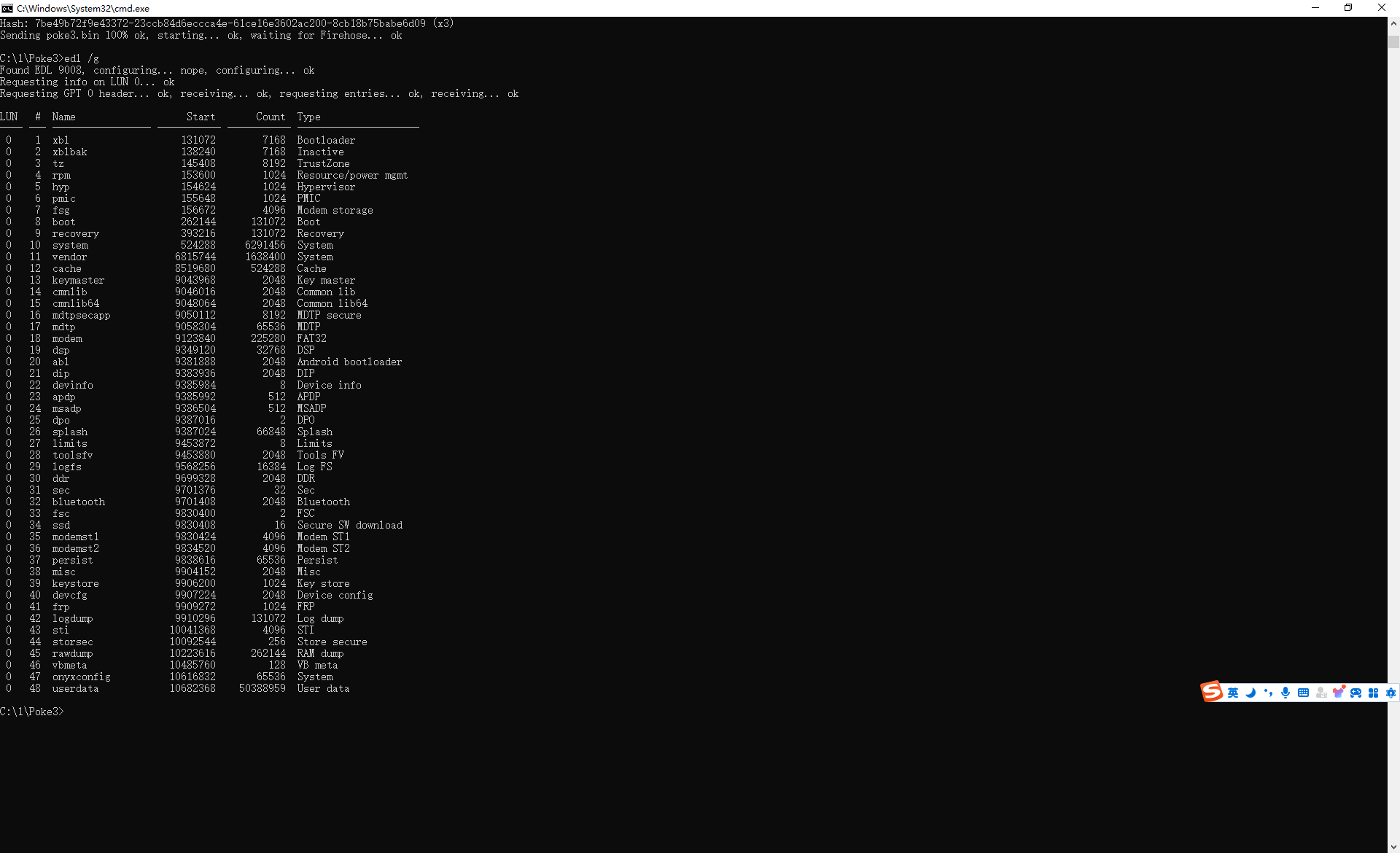 Thanks for your help. I can made it to the edl mode. i can see the partition tables. Before i proceed to the next step, I just want to check with you is there a way i can backup all partitions? Just in case someting gose wrong.  |