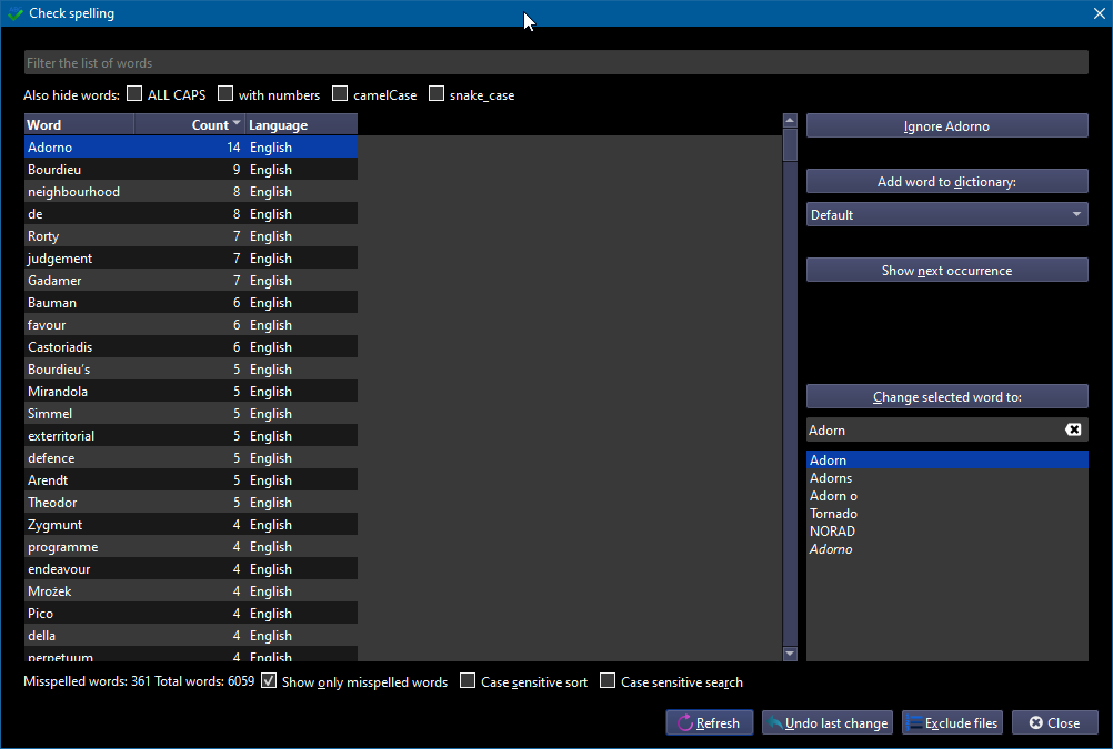 Related to this bug, I would like to make a small suggestion to make the Spell-check view more coherent.