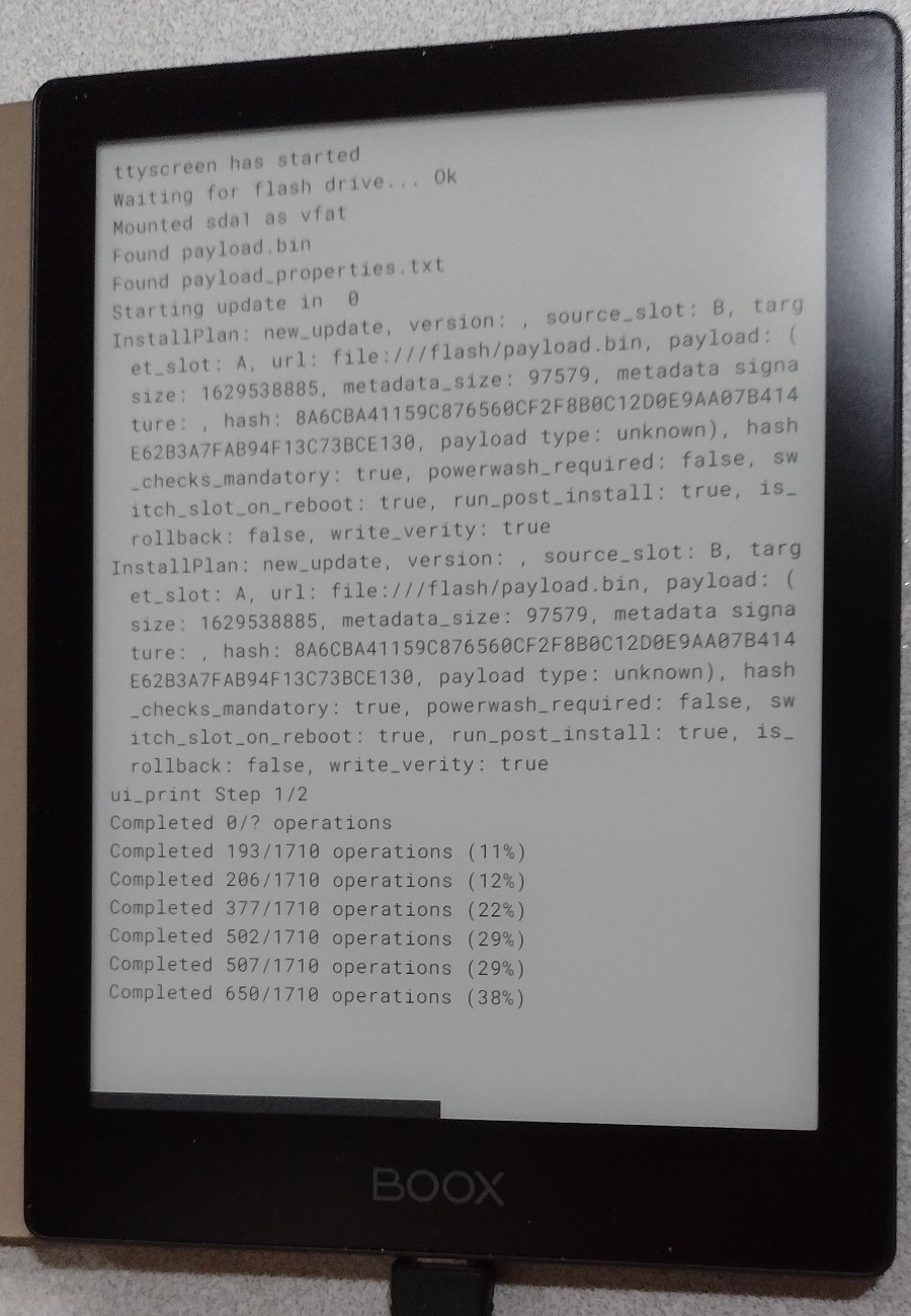 In any case, my stuff is just a wrapper. Once update_engine_sideload takes over, it's in charge. Any problems are to do with that. |