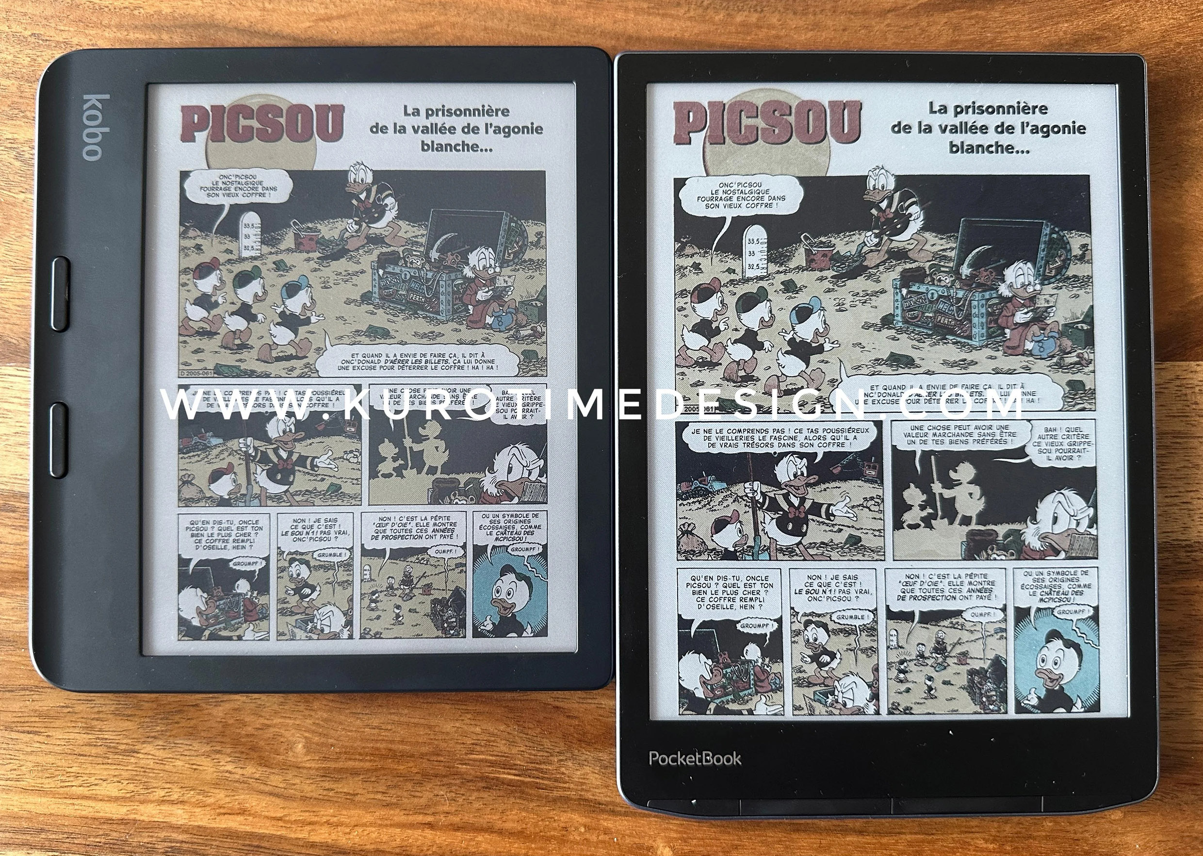There is quite a difference despite both devices using the same type of display (Eink Kaleido 3) and the same ebook-file: -> https://www.reddit.com/r/pocketbook/..._colour_outch/ -> https://www.reddit.com/r/ereader/com..._libra_colour/ It would be nice if Kobo added an option that lets you choose between different color saturations (without having to go into devmode).