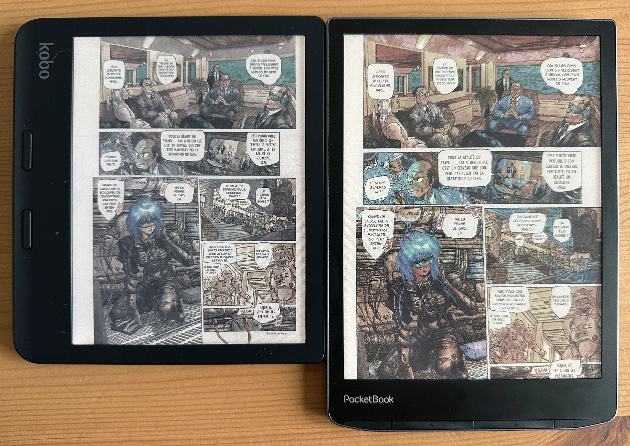 There is quite a difference despite both devices using the same type of display (Eink Kaleido 3) and the same ebook-file: -> https://www.reddit.com/r/pocketbook/..._colour_outch/ -> https://www.reddit.com/r/ereader/com..._libra_colour/ It would be nice if Kobo added an option that lets you choose between different color saturations (without having to go into devmode).
