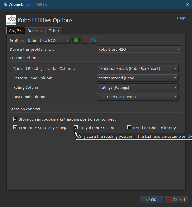 I just acquired my first Kobo, a Clara BW after a decade with Bookeen (RIP). I'm mainly using it for web serials via FFF, and I'm struggling with Kobo resetting the reading position to the cover when I finish a book, making it a moderate pain to continue where I left off when the book gets updated with new chapters. My current workaround is to convert to .kepub and use the precise page numbering to make sure not to actually close the book. It technically works, but I now have to deal with all my books staying at 99% read, making it hard to know which books I've actually finished... I know that this plugin's original author is no longer with us, but I wanted to know whether someone else was working on an enhancement for this particular issue, before I fire up PyCharm and start tinkering on it myself? Or maybe a better workaround/workflow? My plan is to start by trying to add a new "Last chapters count" column alonside the 4 original custom columns. This would allow for something of a progression indicator in the absence of useful information in the "current reading location" column, maybe in conjuction with the "subtitle" metadata from the KoboTouch driver. If I'm successful, I'll see if I can hitchhike on the ToC update function and reset a reading position to the start of the new ToC, if the book is marked as "read". That probably won't be easy for cases where the ToC update is something more involved than just appending new chapters, but at least it'll be better that just "read again from the start". N. |