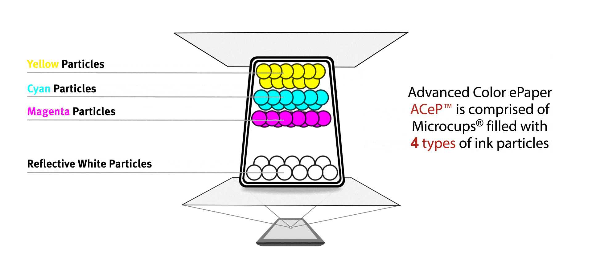 The real next generation of display is eInk's Gallery/ACeP screens. These have 4 different colours of particle in a microcup and by positioning the particles, you can generate more colours than Kaleido 3 is capable of and without reducing the display resolution. The problem is that positioning those particles is a slow process. It can take up to 1.5 seconds to rewrite a colour page in quality mode. For the construction of the ACeP display, see this image from eInk's site: ACeP microcup since the animated GIF gets converted to a jpg when I try using it as an attached image. Last edited by DNSB; 05-23-2024 at 03:26 PM. |