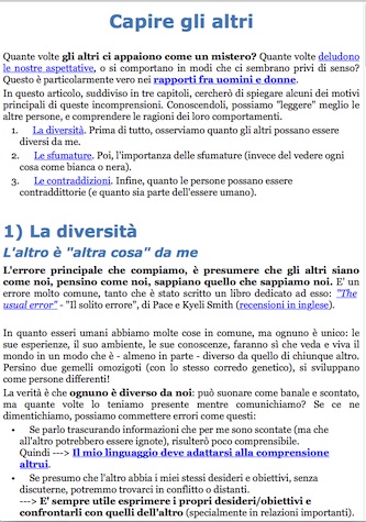 Following the instructions you linked, here are the files: 1. The original Word doc: Capire gli altri CUT-XPORT.docx 2. The Calibre log: Calibre job log.txt 3. The resulting EPUB: Capire gli altri CUT-XPORT.epub The problem: as you can see from the image below, in the EPUB both lists (numbered and dotted) have a much bigger indent than the original Word doc: The following are the options I used during the conversion: - DOCX Input: Do not try to autodetect... = ON - EPUB Output: Do not split... = ON; No default cover = ON; No SVG cover = ON; Put inserted TOC... = ON Hope this helps. Let me know if you need anything else for troubleshooting. Thanks again |