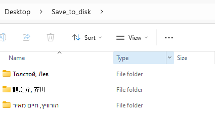 The first attached image is the 3 books in my calibre library, the next 3 images are the books saved to disk with cover image and .opf file in directories based on the author sort field, the last image shows the author sort based directories. |