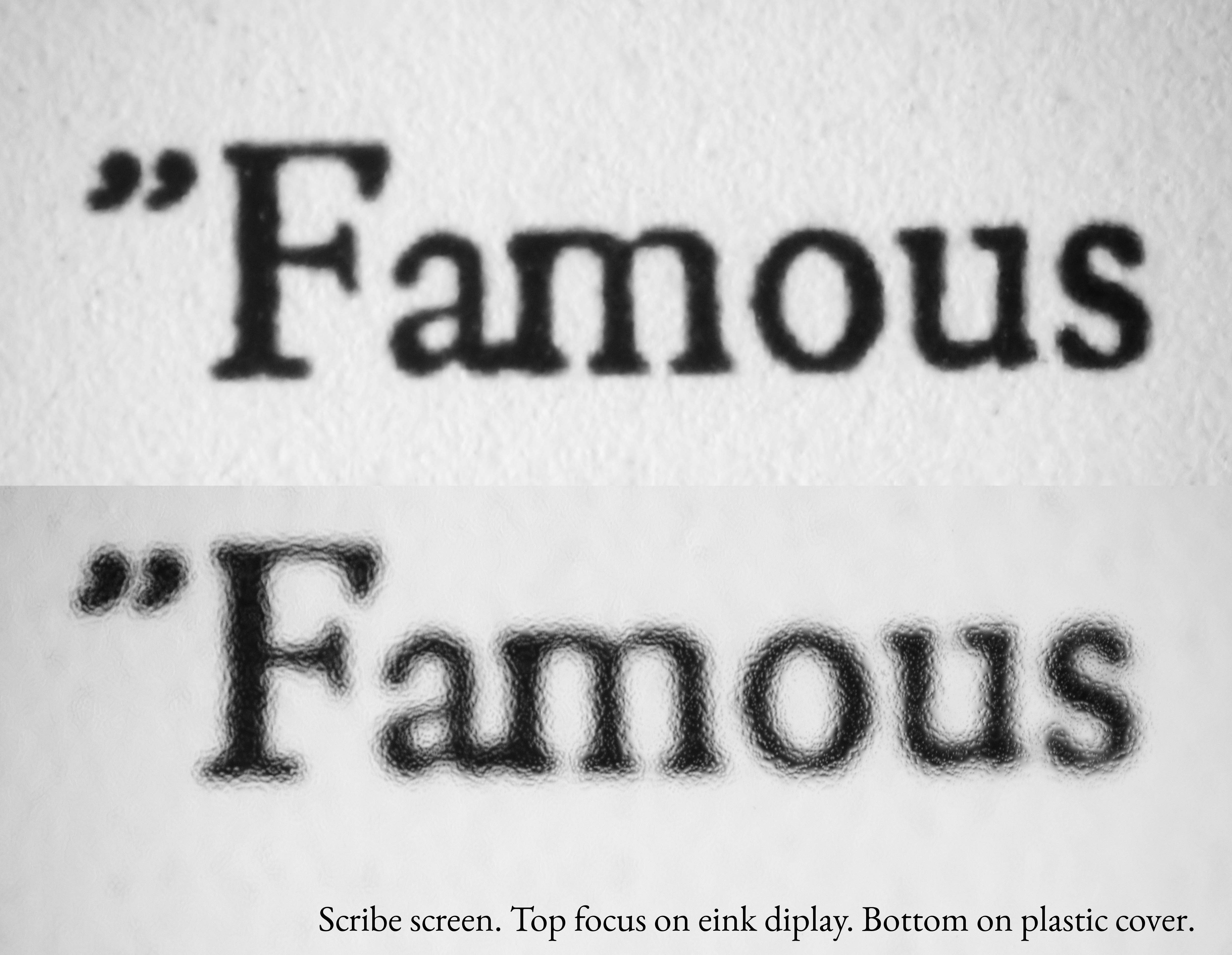 You won't get a perfect device. If I could design my own, I'd take Scribes screen, put it into reMarkable 2 body, and I'd install Pocketbooks software to run it all. I'd take it further and make two devices. One with thin phone-tech glass over the screen, no touch screen, no back light. The other with back light. |