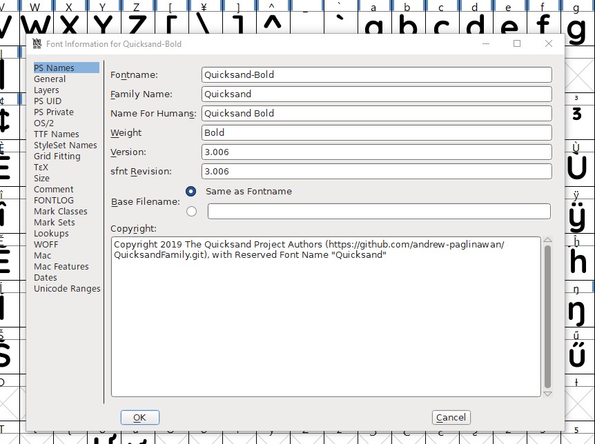 I've been using FontForge to check things with fonts in order to do things like get the font family name (because it was very wrong in the stylesheet originally for this font; it was listed as the font filename rather than the font family name). I've also been able to inspect other relevant properties with it, too (see the attachment for a screenshot). Quote: