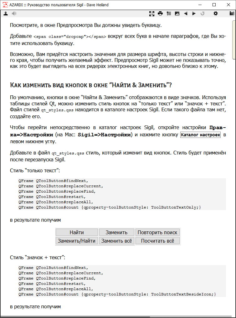 In my translation of the user guide, I also added the sections "How to change the appearance of the buttons in the Find & Replace window?" and "How to recover an EPUB file after a crash?" - this one is in PDF format. (Thanks to BeckyEbook for the clarifications and advice.) |