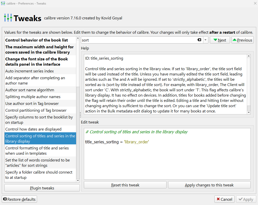 Is it possible to change the "sort title" rule in one go? Calibre makes its own sorting for many books (see image).