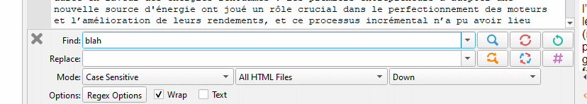 1. Add a File > Close menu item, when the user simply wants to close the current document while keeping Sigil running. 2. Change the dialog that pops up when hitting Search/Replace: If the user hit Search, hide the Replace text + buttons. Personally, I prefer the dialog to be displayed as a (non-modal) dialog at the center of the screen instead of as a bar at the bottom, but I could be in the minority. 3. Add CTRL+F4 to close a sub-window Last edited by Shohreh; 09-10-2024 at 08:58 AM. |