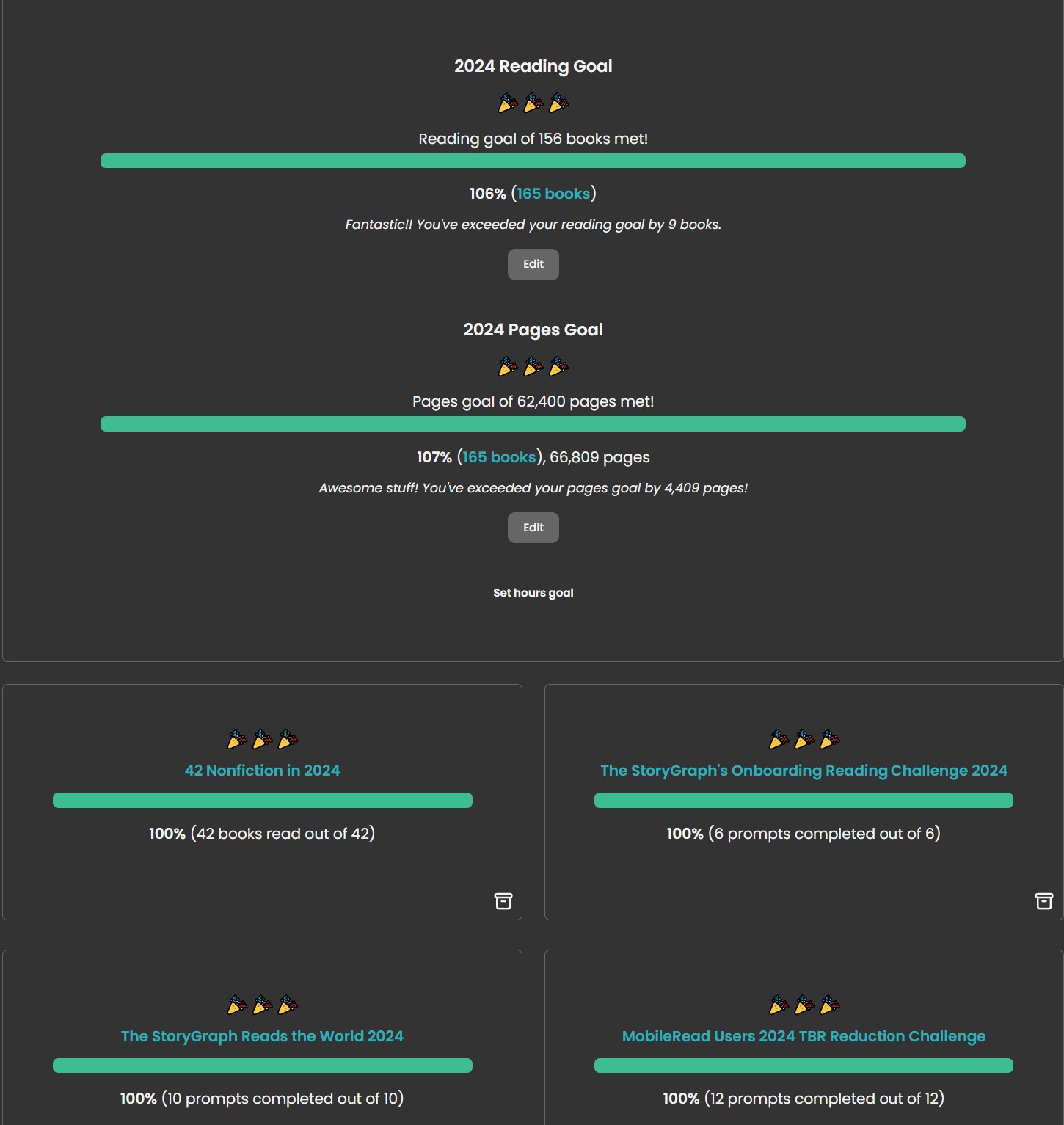 For my 2024 reading goals, not too bad so far.