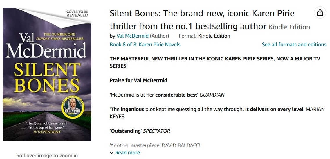 It's far from being even mainly indie authors, though. Val McDermid, for example, is a well-established and successful crime writer with a mainstream publisher. Attached are screenshots from Kobo and Amazon of her forthcoming book. And one of the books giving me similar trouble earlier was by Jonathan Kellerman - again, an established author with a mainstream publisher.