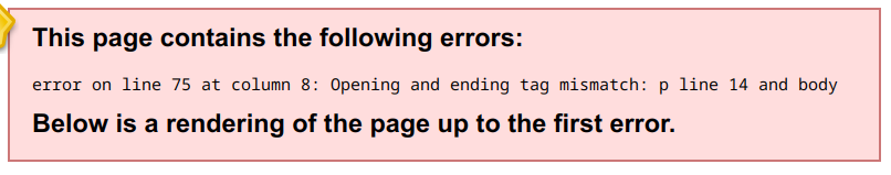This causes difficulty in explaining to fellow authors who I'm trying to convert to Sigil. In making small edits using copy/paste, they quite frequently damage a tag. 1. If the Preview pane is not wide enough, the message runs off the side of the screen. The text does not wrap. See Ex-1.png 2. Depending on what's wrong in the code, the message refers to the wrong line/column combination. See Ex-2.png In the example screenshots, there is a missing < at the closing </p> tag on line 14, column 433 (as witnessed at the bottom, RHS of the screen). See Ex-3.png The error message reports "line 75, column 8" which in reality is the location in this file at the end of the </body> tag. 3. If the closing > is the one missing at the end of the same paragraph, (on line 14, column 436), the error message returns error at line 16, column 3. I can see a certain logic in this case because after the use of the 'Mend and Prettify' tool, there is a blank line 15 and line 16 starts at column 3. Encouraging the use of Prettify complicates the finding of a simple error. Instead of reporting the last available place where the missing element could be, could Sigil report the first possible place? There are several instances where the message is difficult to understand but the location is ok. Also, there are occasions when the message gets truncated like this: "error on line 16 at column 44: Opening and ending tag mismatch: h2 line 16 and a". And that is not a case of the Preview pane having insufficient width. Moreover, the error in this case was a missing < at column 27, inside an edited internet link. Links are another item that our non-tech authors often mangle. |