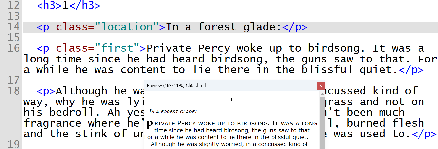 I probably should also do an h2 + p for no indent as I mostly use <h2> for the chapter header. |