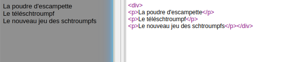 <div>05/07/13<div>Dernière page lue : Emplacement 6514 (99%)</div></div> Clicking the HTML source tab I see: The source HTML is now transformed. <p> tags are added around the date and the nested <div> is changed to <p>. The Normal view is now: Adding a space after the date to force the comment to be saved, the raw HTML becomes Code: