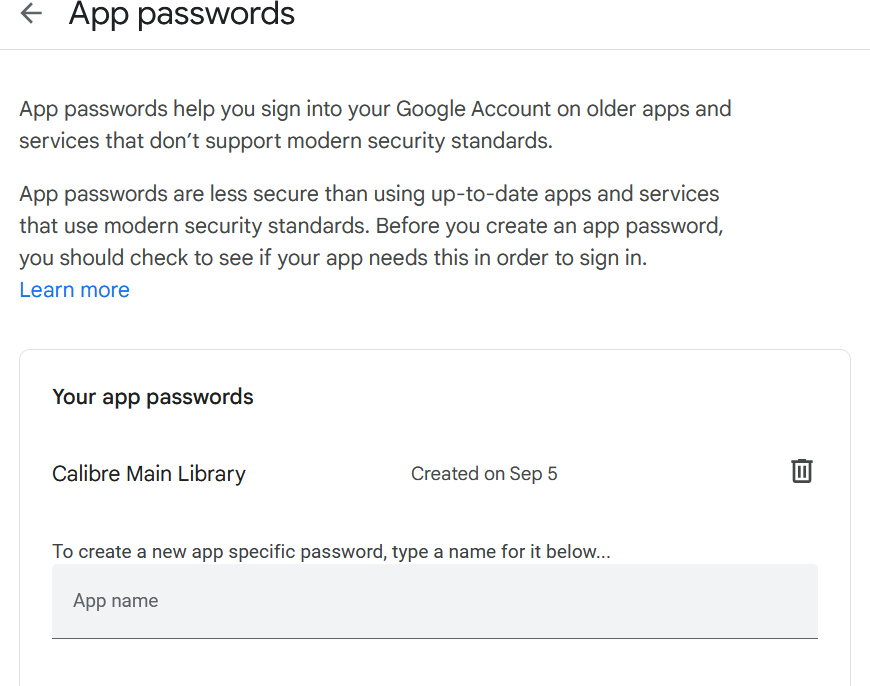 hi set it all up, using the google app passwords. i was messing with metadata and columns at the time so i was testing this in a seperate library because my main library has 17k fics in it. it worked fine, but as soon as i moved back to my main library (didnt change any settings or touch anything!) i get the: