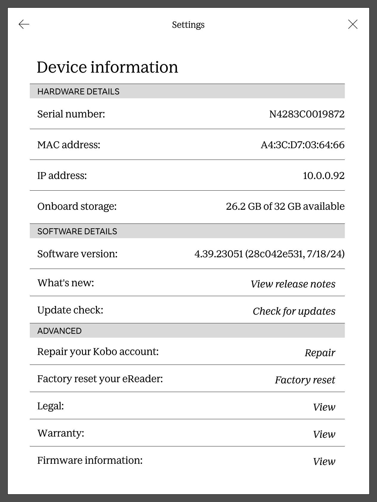 Device: Kobo Clara HD