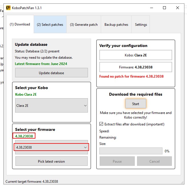 4. Open KoboPatchFan, go to the Download section and select the firmware (image 5)