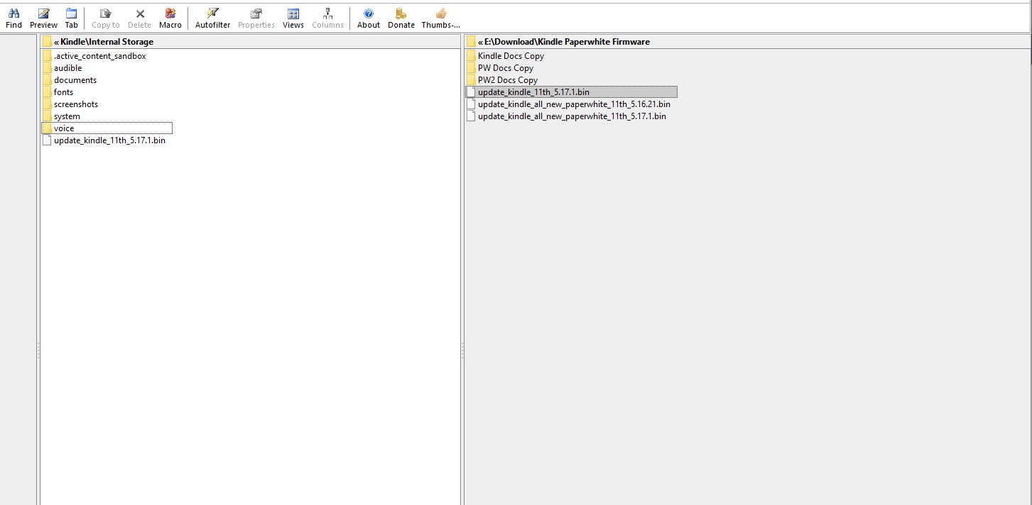 I don't want to disagree with you but see my screenshot. The right hand pane is the download to my E drive and the left hand pane is the .bin file which I have transferred by USB to my new basic. The file is showing but the Kindle then rejects it as incorrect when I try the upgrade.