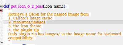 I too think that the resources folder must have higher priority than the themes. And upon a quick test using distinct icons for the main plugin icon in the theme and in resources folder, all is working fine as well: the image that shows in Calibre main toolbar is the one in resources. edit to add - now that I looked again at the comments in the code, it's clear that I got things mixed up:
