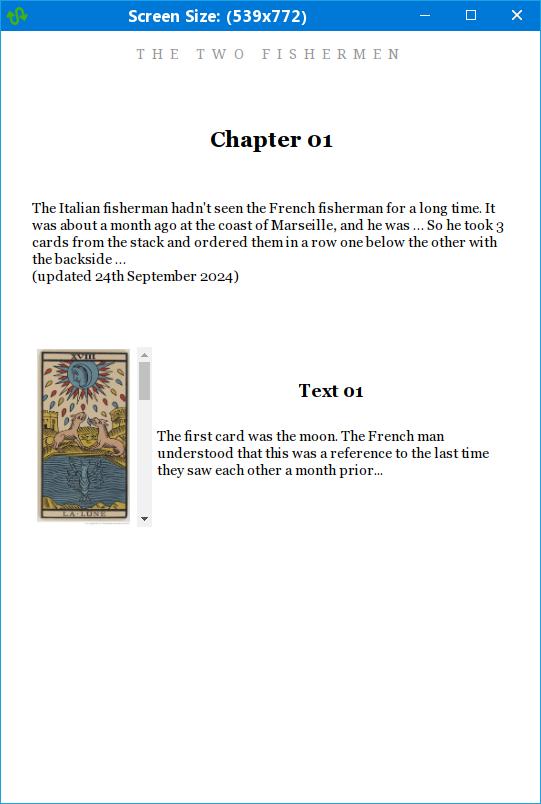 I want to create a scroll animation for an EPUB3 e-book. The animation activates a tarot card that generates a text. I have a web version here: https://www.edgedpub.com/The_Two_Fis...chapter-2.html I copied the code files into an EPUB3 document and edited them. According to EPUB Checker, there aren't any mistakes. Sadly, the JS animation doesn't work. I can't scroll and the cards don't generate the texts. See the EPUB3 document here: https://edgedpub.com/sample_work_7.php Many thanks Daniele |