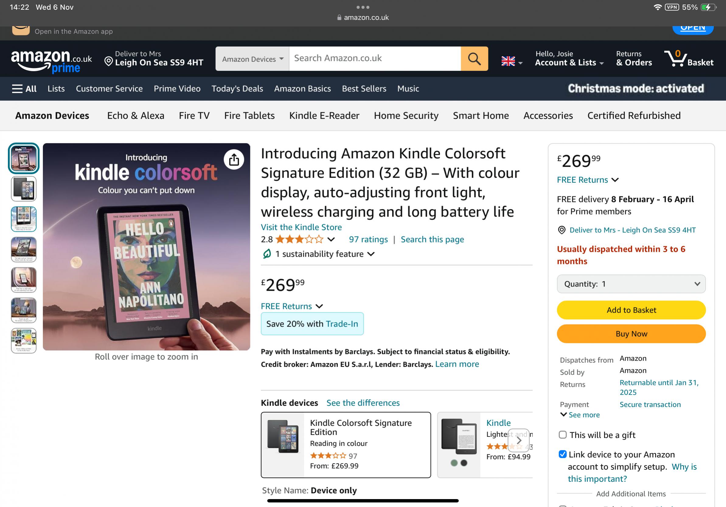 I just thought I’d mention the UK delivery dates for the Kindle Colorsoft is now 3-6 months, 8th Feb to 16th April. Surely that’s going to hurt their Christmas sales