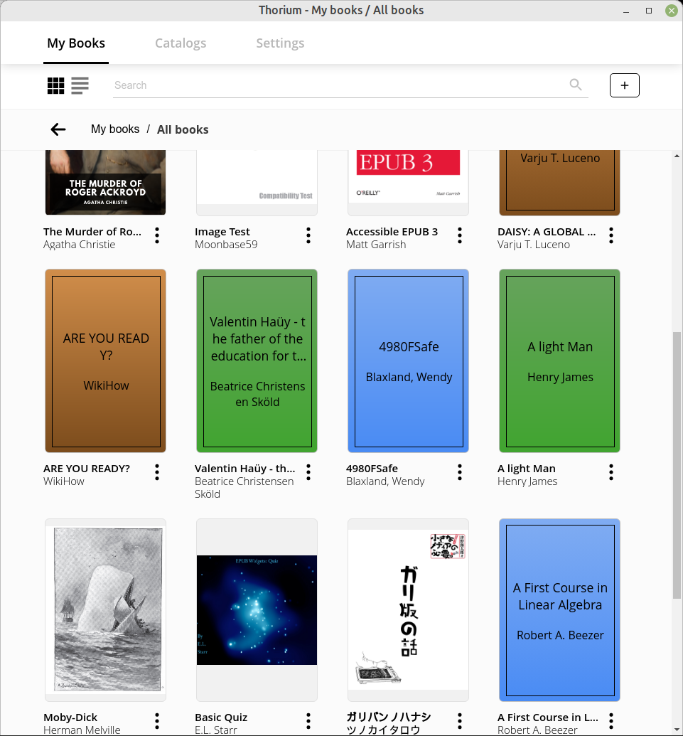 Library is stored in $XDG_CONFIG_HOME/EDRLab.ThoriumReader/publications/. OPDS works fine. Tested Standard Ebooks and local Calibre instance. Series: Should show series info (name, number), but doesn’t. Suggest showing Calibre data for EPUB2, official tags for EPUB3. Last edited by Moonbase59; 01-13-2022 at 04:55 PM. |