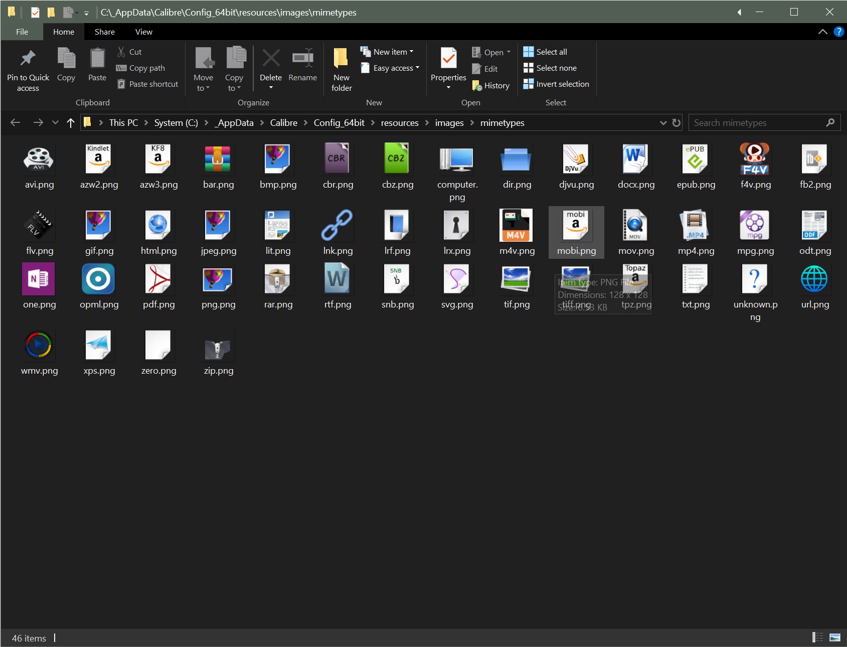 Format icon overrides can be placed in <calibre config>\resources\images\mimetypes.