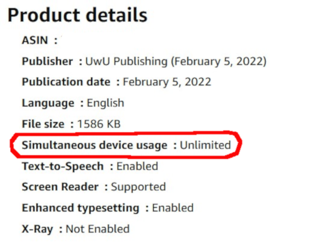 Google Play: WIP TBD Bonus: Amazon: In the Product Details section of Kindle books, you can look for this and it will tell you if it is an Amazon-trapped book: Last edited by meghane_e; 01-23-2025 at 02:28 PM. Reason: Close thread |