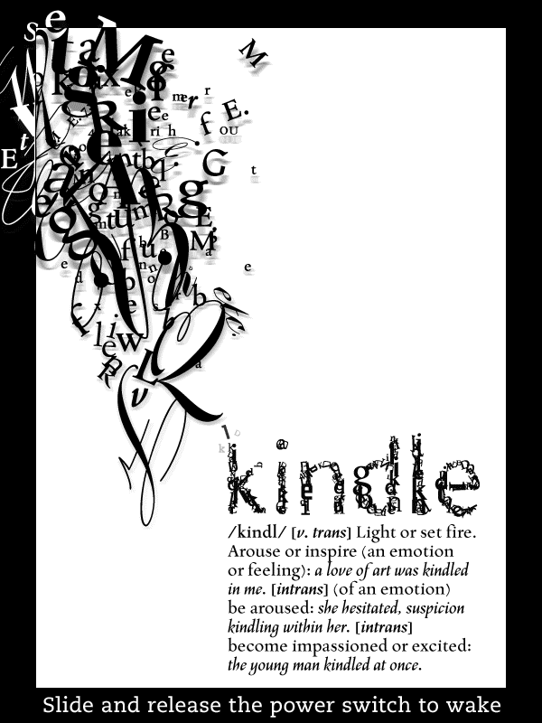 "Kindle" (i.e., to kindle sparks of recognition/interest/intelligence/learning/etc.) is a marketing ploy employed by Bezos to confuse us into thinking that he cares that we read, in stead of realizing he wants 'us' to buy his products. I wouldn't mind so much if Amazon were a non-profit, but now it is just designed to cause cognitive dissonance in potential buyers over having to choose between DRM and ease-of-use.