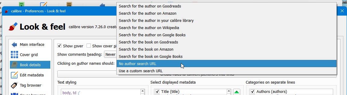 @chaley: bit OT - could the Prefs->L&F->BD->Clicking on author names should: list of choices be furnished with a 'Do nothing" option, at the moment I fudge it with a bodgie custom URL.