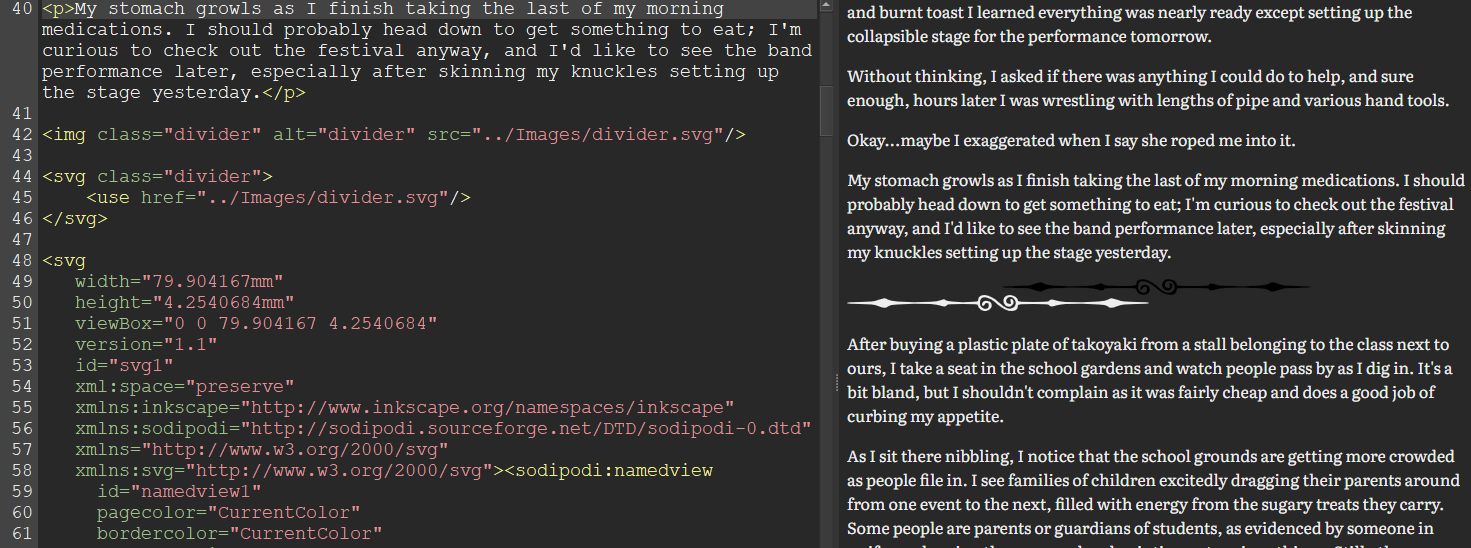 So here's the picture of my being bad at epubing... You can see three attempts at displaying the svg divider :
