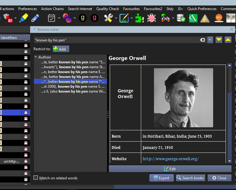 Are you implying you use JS->Notes Viewer to read Category notes (i.e. author, series, publisher, etc)? I wouldn't have thought that was possible.
