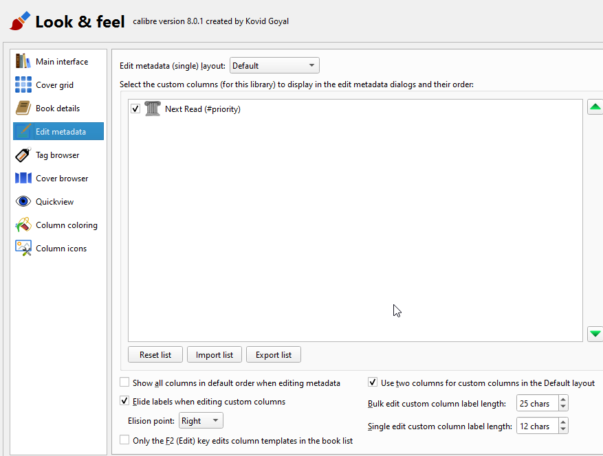 The first couple of images are what my settings look like after adding the new column. The next couple show that I don't see my new field in either the main window or on the metadata for a book. However, I also came across something else that shows my new column, but I don't know what it is.
