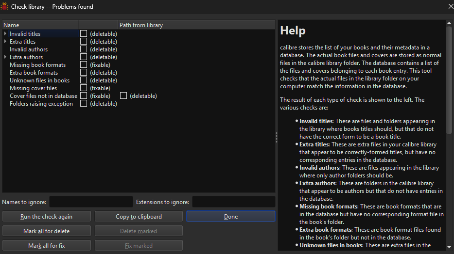 For example, it detected different formats (one of them being OPF), and some of the books already in Calibre had a format name [none], which is weird.