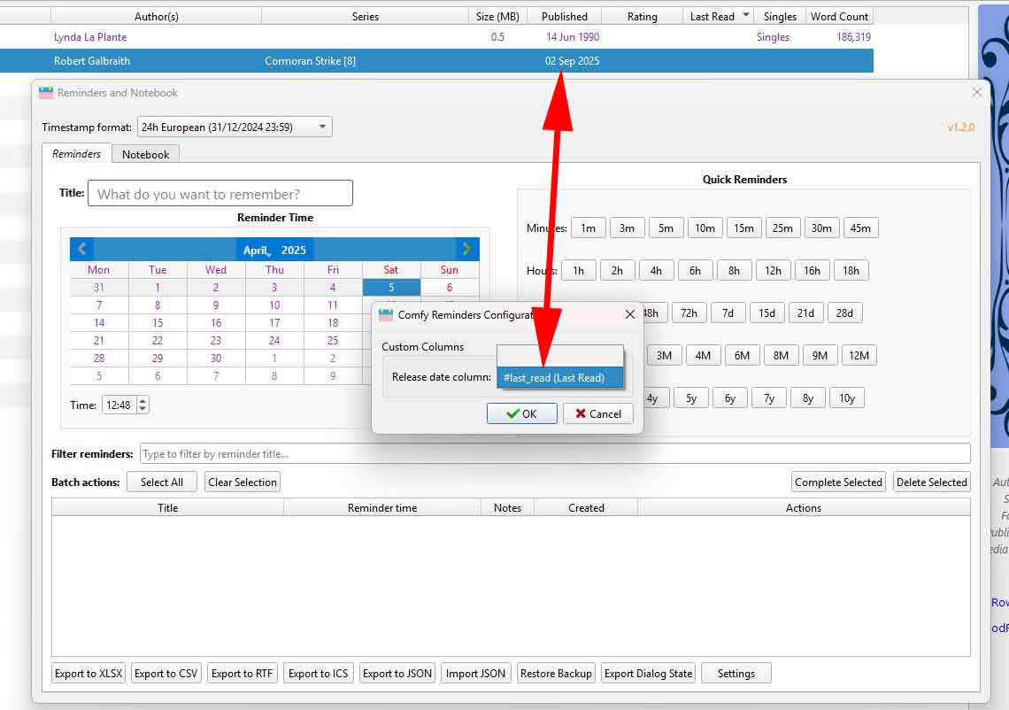 Another corner case but I'm going to comment it anyway: If you add a reminder over a book, based on custom column, that has already been created, there is no warning about it and a duplicated reminder is created.