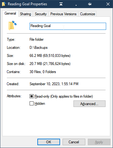 PSA: Apply NTFS compression to the backup folder (if applicable). Compare Size and Size on Disk for comparison: