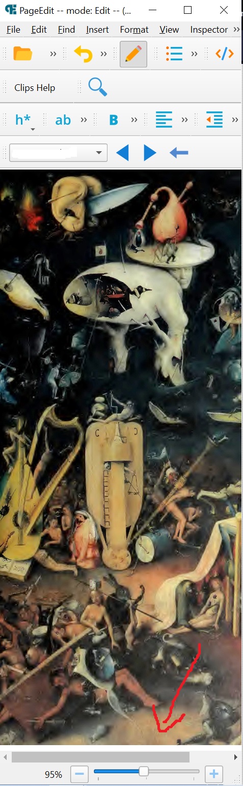 So, to be clear, I don't have a problem with the scrollbar per se. I mean, if it is necessary to see the whole image then I definitely want it! What I think I'm seeing now is that even at 100%, the vertical scroll bar is actually just showing a sliver of white space below the image, not actually revealing any more of the image (and i assume this is what you mean by "that means nothing"). So what's really happening (I think...???) is that the picture IS 100% of the window height... its just that the container is greater than 100% of the window height, hence the extra little sliver of whitespace that results in the scrollbar (unless you hide "overflow"). Regarding how the two programs render it, I'm seeing that Calibre proportionally resizes the image when you narrow or widen the window, but Sigil stretches the image if you widen the window (which you alluded to in your first post). If you set the image width to "auto", again, Calibre proportionally resizes the image when you widen or narrow the window. Basically, it doesn't allow for overflow—hidden or not. In Sigil/Preview, widening the window preserves the aspect ratio just fine, BUT narrowing the window results in the left side of the image being cut off (presumably because the overflow has been hidden). Now.... here's where things go completely off the rails. If I use the attached "Test1" file which seems to be the same as yours except that I've switched out your image for my image, setting width to "auto" results in a squishy image in Calibre! If i change your image to "auto", it resizes perfectly in Calibre (but cuts off the image in Sigil); if i use the same code on MY image, it gets squished in Calibre. I've attached both your file (modified to "auto") and mine... P.S. one important thing I learned is that <p> has embedded margins, while <div> does not, so I've changed that container for the image itself, as per your example. P.P.S. Does anyone here know how we can just instantly upload knowledge to our brains as in The Matrix? That would save me a lot of time. kthxbye. Last edited by ElMiko; 06-14-2025 at 08:23 PM. |