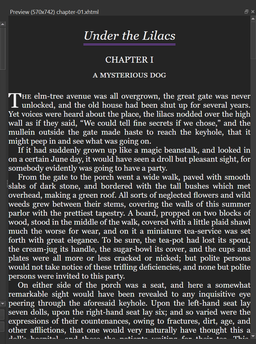 Now, you do have to play about with it. For instance, if you add any padding, you have to consider that if a device honors first-letter but NOT initial-letter, you could get an odd look if you go crazy with too much. A tiny dab might be OK. I've been playing with adding a trace for the letter "I", because it tends to look a bit cramped otherwise. It's possible it might not play well with every font too, I tried it with Open Dyslexic and placement of the drop cap was odd. So a risk, given one never knows what fonts people will decide to read with. I've seen folks post some doozies! And, with a phone in landscape orientation, you run the risk that if only the first line of the chapter fits on the screen, your drop cap will show, but its bottom half on the second line will be truncated.... I tossed the epub into the Kobo iOS app and also BookFusion iOS, and not only is initial-letter honored, but also hanging-punctuation! YAY! I tossed in a picture of the hanging-punctuation property working in the Kobo app on my iPad! Fun times if you make backward compatible epub3! You can't eat cake ALL the time, but sometimes is nice! |