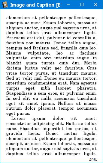 1. In Thorium (with a font-size of 100%): 2. In Thorium (with a font-size of 137.5%): 3. In Calibre Viewer (with a font-size of 14px): 4. In Calibre Viewer (with a font-size of 18px): I attach the respective epub so you can test it in your system. Open it in Calibre Viewer and start with a font-size: 14px; then increase the font-size to 28px. As you will be able to see, the caption remains with the picture and there is no fragmentation in the text (there is no blank space generated by the image and the change of the font-size). You must be doing something wrong, otherwise you would have the same output than me. Quote: