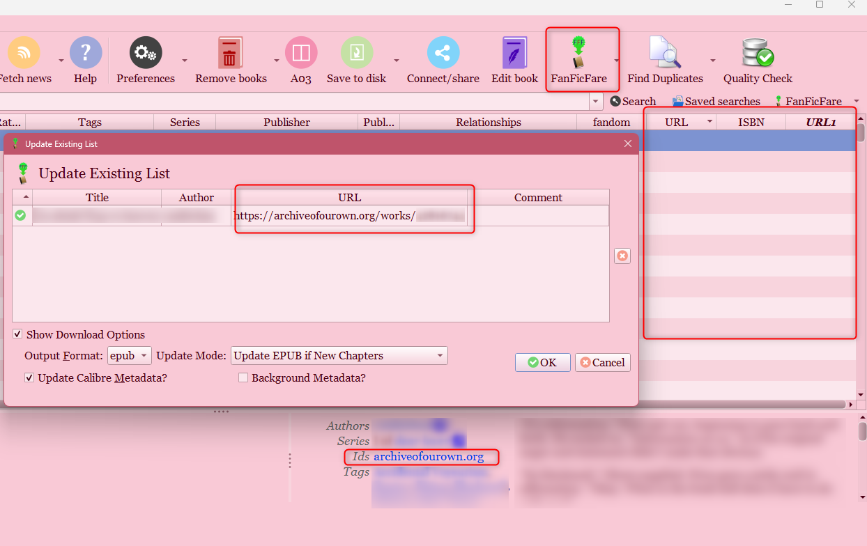 Hi! I use Fanficfare to download exclusively from ao3. I love this plugin but would like to utilize Calibre better for my library.