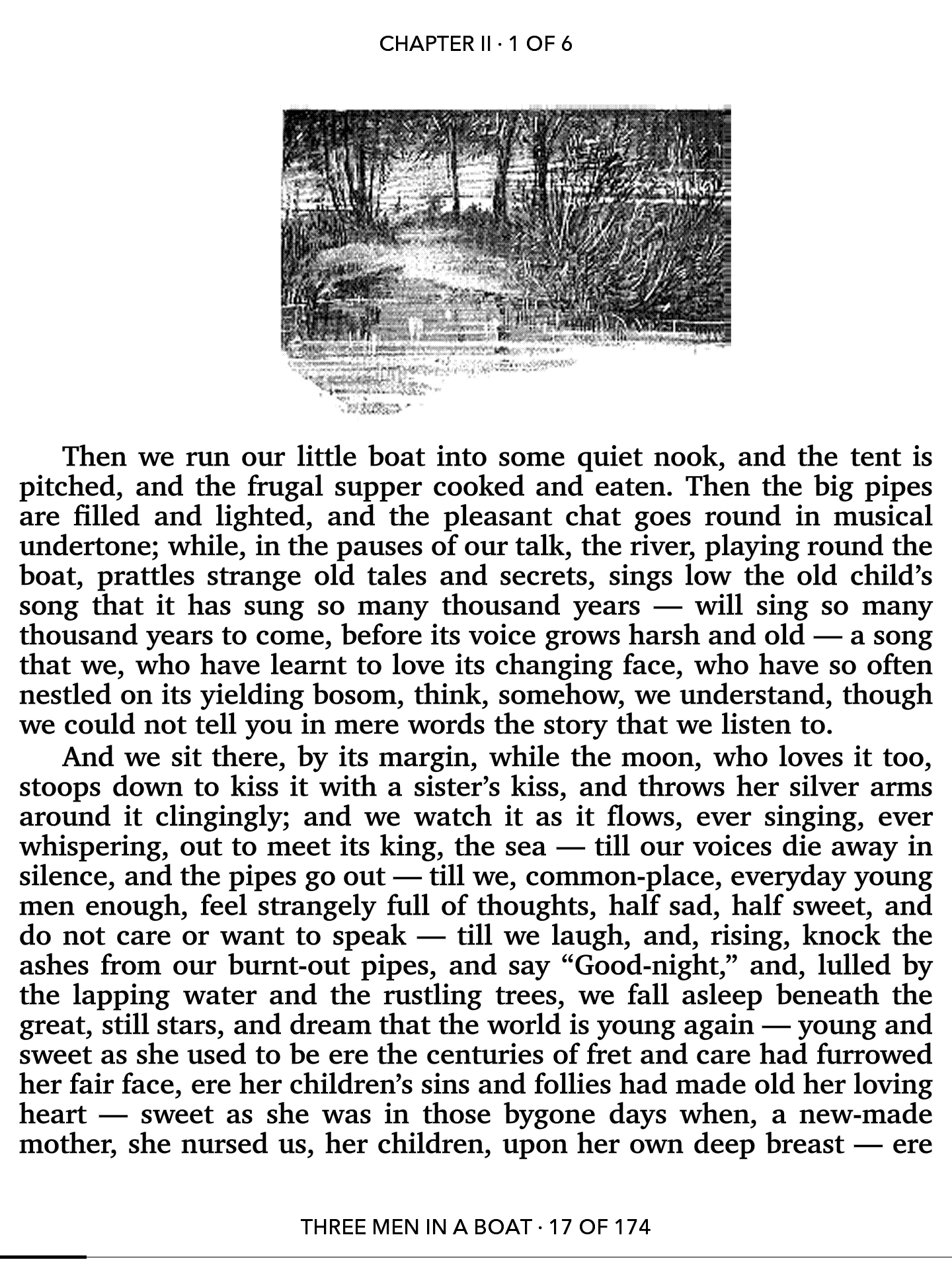 And, yes you are changing your words, you went from KFX forcing the look of the books, which I'm glad to say, has been overruled, to KFX providing nothing new. In a few more posts, you'll start admitting that it offers features not present elsewhere. ![]() ps. Here's same epub on my Pocketbook InkPad in its native reader. That should be one of the devices that fits "Amazon's Enhanced Typesetting does not seem to offer any typesetting features that have not been available elsewhere for years if not decades." Ligatures work. But it again does nothing to image sizes. So they're too small in this case as well. And I can't enlarge them, either. I also didn't get the justification to work. It may be possible, but it would require tinkering with the file. Still, with KFX it all works out of the box without any fuss at all. And I think that's the biggest benefit of it. In combination with native Kindle reader, it provides simple experience that works really well in most cases. I've pretty much moved completely to epub and KOReader on my Kindle, but denying KFX's benefits, or downplaying them, is a bit silly. It's a good format. Last edited by jackm8; 07-04-2025 at 07:05 AM. |