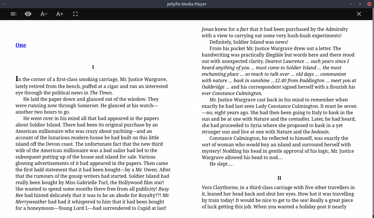 But it makes a pretty good job for e-books, too! At least for DRM-free EPUB books. And you can have an OPDS plugin, so you can search your library and download from it, using your e-reader. Using a Jellyfin Client, or just your web browser, you can even read your EPUB books online. It’s actually not too bad at that, so you could read from your library without any extra reading software. I simply rsync my Calibre Library to my NAS, and the Jellyfin server has access to that folder. I simply love that "all-media-in-one" solution! Here are some screenshots:
